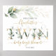 Poster Sinal de Chá de fraldas de Boys Gêmeos de Folhagem