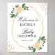 Poster Sinal de Chá de fraldas Floral Dourado Verde