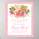 Chic e chá de fraldas alegre O poster do Livro Convidado com um rico buquê de flores, botões, galhos e folhas. Rosa, coral, verde, laranja, roxo. Letra rosa quente. Combinação de fontes elegante, script e servidor clássico. Fundo rosa. Festivo, chique, elegante, elegante. Ideal para chá de fraldas floral ou rosa. Trabalho de arte baseado no cartão floral vintage do século XIX.