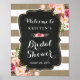 Poster Sinal de Chá de Noiva Floral com Listras de Sarjap