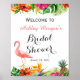 Pôster Sinal de Chá de Noiva Luau Flamingo Floral Tropical.