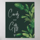 Pássaro verde tropical do paraíso folha cartões exóticos de chá de panela de aquarela e sinal de presentes.