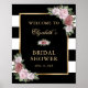 Sinal de boas-vindas do chá de panela floral elegante preto e branco listrado. Itens correspondentes disponíveis.