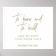 Este sinal de caligrafia dourada caprichosa "para ter e segurar" é perfeito para um casamento moderno. O design apresenta uma tipografia dourada elegante e rústica para um visual minimalista simples. Os coolers combinando são vendidos separadamente.