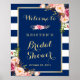 Modelo de Sinal de Chuva de Presentes de Noiva com Listras Azuis Navy e Floral Rosa.
