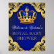 Poster Sinal de Chuvada de Bebê Azul Royal Dourado Prínci