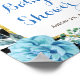 Cartaz de Sinal de Chuvada de Bebê com Listras Brancas Pretas Florais Azuis e Moldura com Brilho Dourado.