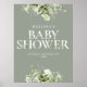 Poster Sinal de Chuvada de Bebê Floral Verde Sábio
