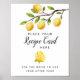Sinal de chuveiro de noiva / casamento rústico com ilustração de aquarela de limões pendurados em um galho de árvore. O texto diz "coloque seu cartão de receita aqui para a noiva usar ano após ano."