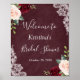 Pôster de Sinal de Chuveiro de Noiva com Renda Floral Rosa Bege Vermelho Borgonha.