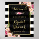 Sinal de Chuveiro de Noiva Modelo de Cartaz de Moldura Dourada Floral Vintage com Listras Brancas e Pretas - Um Design Perfeito para você.