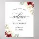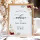 Cartaz de Sinal de Conselhos e Boas Intenções de Casamento Floral Rosa Vermelha Branca.