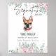 A bela placa de bebida de cachorro Bulldog Francês apresenta um belo design floral de estimação em estilo aquarela- perfeito para um casamento saturado em tons neutros. É uma maneira atraente de soar o coquetel, a comida ou a mesa de sobremesa do seu evento! Personalize o sinal de bar de casamento com o nome do animal de estimação e beba detalhes.