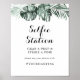 Este sinal de estação de selfie floral branco de folhagem tropical é perfeito para um casamento rústico ou chá de noiva. O design apresenta ramalhetes de folhas de palmeira verdes com lindas flores brancas.