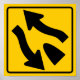 Sinal de aviso de estrada e autoestrada ao estilo internacional avisando que a estrada dividida termina.