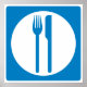 Rodovia internacional e cartazes de autoestrada aconselhando restaurantes nas proximidades.