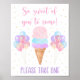 Este sinal adorável será um excelente adicional a uma festa temática sorvete. Enquadre o sinal e mostre-o na sua mesa a favor do partido. O design apresenta sorvete de cor d'água colorido do arco-íris pastel com falso confetti de folha de ouro.