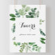 Este sinal de favor de caligrafia botânica de eucalipto verde é perfeito para um casamento rústico ou chá de noiva. O design apresenta belas folhas verdes de eucalipto pintadas à mão artisticamente, montadas em buquês arrumados para embelezar seu evento.