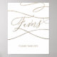 Este sinal de favor de casamento em caligrafia dourada romântica é perfeito para um casamento simples. O design clássico moderno apresenta redemoinhos sofisticados e floreios caprichosos com tipografia dourada em relevo falsa elegantemente manuscrita.
