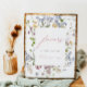 Os favores de flor silvestre assinam que apresenta gráficos florais de cor d'água e uma fonte moderna. Este bonito cartaz de mesa é perfeito para um chá de fraldas, chá de panela, casamento ou outro evento especial temático de flores silvestres. Coloque-o com qualquer coisa na coleção ELODIE para um olhar coeso.