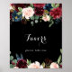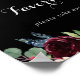 Este sinal de favorecimento do casamento botânico preto é perfeito para um casamento ou chá de panela clássico. A design apresenta flores brilhantes, vermelhas, marinhos, azuis e esbranquiçadas radiantes e graciosas pintadas à mão num fundo preto, inspirando beleza natural.