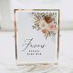 Convide amigos e família para onde fazer um favor no seu casamento ou evento com este sinal de mesa mínimo e elegante, com flores e verde em cores quentes.