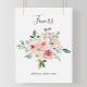 Este sinal de favor floral outonal delicado e elegante é perfeito para um casamento moderno ou chá de noiva. O design apresenta rosas cor-de-rosa ilustradas, rosas coradas e brancas, peônias com folhagem verde agrupadas em buquês, acentuando as belas cores do outono.