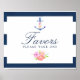 Trendy náutica favorece poster com âncora floral de cor d'água, flores e listras de marinho.