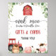 Sinal de Festa de aniversário de Folhagem Fazenda de Casca Vermelha Sinal de festa de aniversário de fazenda em forma de grão-de-água, porco, vaca e cavalo, bem como alguma folhagem de eucalipto e um celeiro e trator vermelho.