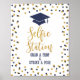ESTAÇÃO DE SELFIE - PEGUE UM ADEREÇO E FAÇA UMA POSE Sinal de festa de formatura com um design de confetes brilhantes em dourado e azul marinho.