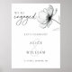Este sinal de boas-vindas de festa de noivado minimalista e elegante em preto e branco com flores 'nós estamos noivos' pode ser personalizado com suas informações em tipografia estilosa. Projetado por Thisisnotme©