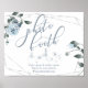 Floral Azul Poeira para combinar com o tema do seu casamento, Guie todos para o estande de fotos para ótimas fotos do evento! Rosas, folhas e bagas em aquarela em azul poeira moderno e elegante rodeiam uma moldura prateada em estilo terrário geométrico com folhagens verde-sage. Personalize o texto, o estilo da fonte, a cor e o tamanho. Arte original criada para a BarefootBride™ por © WhimsicaArtwork™ - Esta é parte de uma Suite de Papelaria de Casamento completa com papelaria de casamento, chá de bebê e outros eventos.