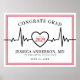 Este letreiro de festa de formatura com tema de batimentos cardíacos apresenta uma mistura ousada de preto e vermelho, com uma moldura vermelha de linha dupla impressionante e um fundo vermelho, adicionando um toque moderno e ainda assim atemporal. As fontes serifadas clássicas e a tipografia moderna e limpa complementam perfeitamente a linha do coração do EKG, tornando-a uma maneira ideal de celebrar um graduado em medicina ou enfermagem. Embora o design atual apresente preto e vermelho, todas as cores - incluindo a linha de batimentos cardíacos e o fundo - podem ser personalizadas para combinar com as cores da escola ou as tonalidades favoritas do graduado.