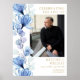 Um sinal de memorial de funeral de foto floral azul elegante de celebração de vida. Projetado por Thisisnotme©