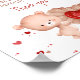 Pequeno Namorados vermelho doce Chá de fraldas Raffle Sinal Fralda Raffle apresentando um lindo ursinho de pelúcia bebê segurando um biscoito cardíaco, todo vermelho e bege, com pequenos corações sobre fundo branco - Kate Eden Art
