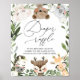 Dê aos seus hóspedes uma direção encantadora com o nosso lindo cartaz de rifa de fralda, com a cor d'água dos animais de floresta e uma elegante letra de estilo manuscrito.
