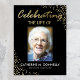 Sinal de boas-vindas de funeral com um fundo preto elegante que pode ser alterado para qualquer cor, uma foto de seu ente querido, uma dispersão de glitter dourado, seu nome e datas.