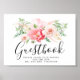 Convide convidados para assinar seu livro de convidados com este elegante design floral rosa. Todo texto pode ser personalizado. Você também pode alterar a cor de fundo