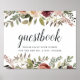 Projetado para combinar com a nossa coleção de casamento Rustic Bloom, este elegante cartaz botânico convida convidados para o casamento a assinarem o seu livro de convidados. Personalize com duas linhas de texto personalizado no roteiro de caligrafia e na letra serif tradicional (mostrada com "Guestbook; por favor, deixe seus desejos para o novo Sr. e Sra. [nome]"), enquadrado pelas flores do outono e pelo verde.