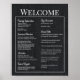 Enquadre este Sinal de Boas-vindas e as Informações de Convidado para todos os visitantes verem. Perfeito para aluguel de férias ou Airbnbs. Ele tem um belo design de tecido em cinzas escuras e impresso em papel de sua escolha. Personalize todos os detalhes para ajustado do seu aluguel.
