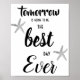 Lembre seus convidados de que amanhã (o dia do seu casamento) será o melhor dia de todos com este divertido sinal temático de praia. Um jantar de ensaios é obrigatório para o seu casamento com tema de praia! O sinal também pode ser personalizado para se adequar a qualquer tema (basta remover/alterar a estrela-do-mar para se adequar ao seu tema!)