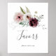 Este sinal de livro de visitas de romance floral é perfeito para um casamento elegante. O design moderno rústico boho apresenta flores românticas em aquarela em tons suaves de borgonha, mauve, rosa beije e branco creme com folhas verdes.