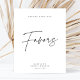 Este sinal de lembranças de chá de noiva chic e minimalista apresenta um fundo branco clássico combinado com uma tipografia e caligrafia cinza escuro simples, porém elegante. Edite simplesmente o modelo com suas informações e escolha as opções. Todas as cores neste modelo são personalizáveis, até mesmo a escrita. De moderno a tradicional, este design é perfeito para muitos estilos de chá de noiva.