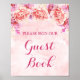 Poster Sinal de Livro de Convidado Flores de Aquarela Ros