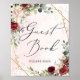 Poster Sinal de livro de hóspedes florais de ouro vermelh