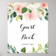 Este simples sinal de livro de visitas com caligrafia verde floral é perfeito para um casamento tropical ou chá de noiva. O design apresenta lindas rosas pintadas à mão, brancas, rosadas e avermelhadas, inseridas em folhagens verdes, inspirando beleza artística.