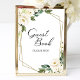 Sinal de Livro de Visitas Floral Branco Geométrico Verde