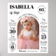 Nossa poster de data de aniversário de fotos é a maneira perfeita de celebrar e documentar um aniversário especial. O design apresenta um tema moderno único e memorável com espaço para o nome do seu filho, marcos especiais, conquistas e memórias de sua vida até agora. É uma forma excelente de celebrar um aniversário de um marco e criar uma lembrança duradoura da ocasião especial. Este marco não é apenas uma decoração única, já que os convidados do partido terão a oportunidade de aprender mais sobre o primeiro ano do seu filho e a sua personalidade crescente.