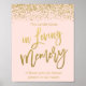 Poster Sinal de Memória de Casamento Brilho Rosa Dourado