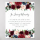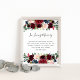 Projetado para combinar com nossa coleção de casamento Radiant Bloom, este sinal botânico elegante é perfeito para ser colocado em uma mesa de memória ou exibição em homenagem aos entes queridos que se foram. Personalize o cabeçalho e o texto do corpo (mostrado com "Em Memória Amorosa" e um breve poema) emoldurado por flores e folhagens em tons de joia em aquarela.